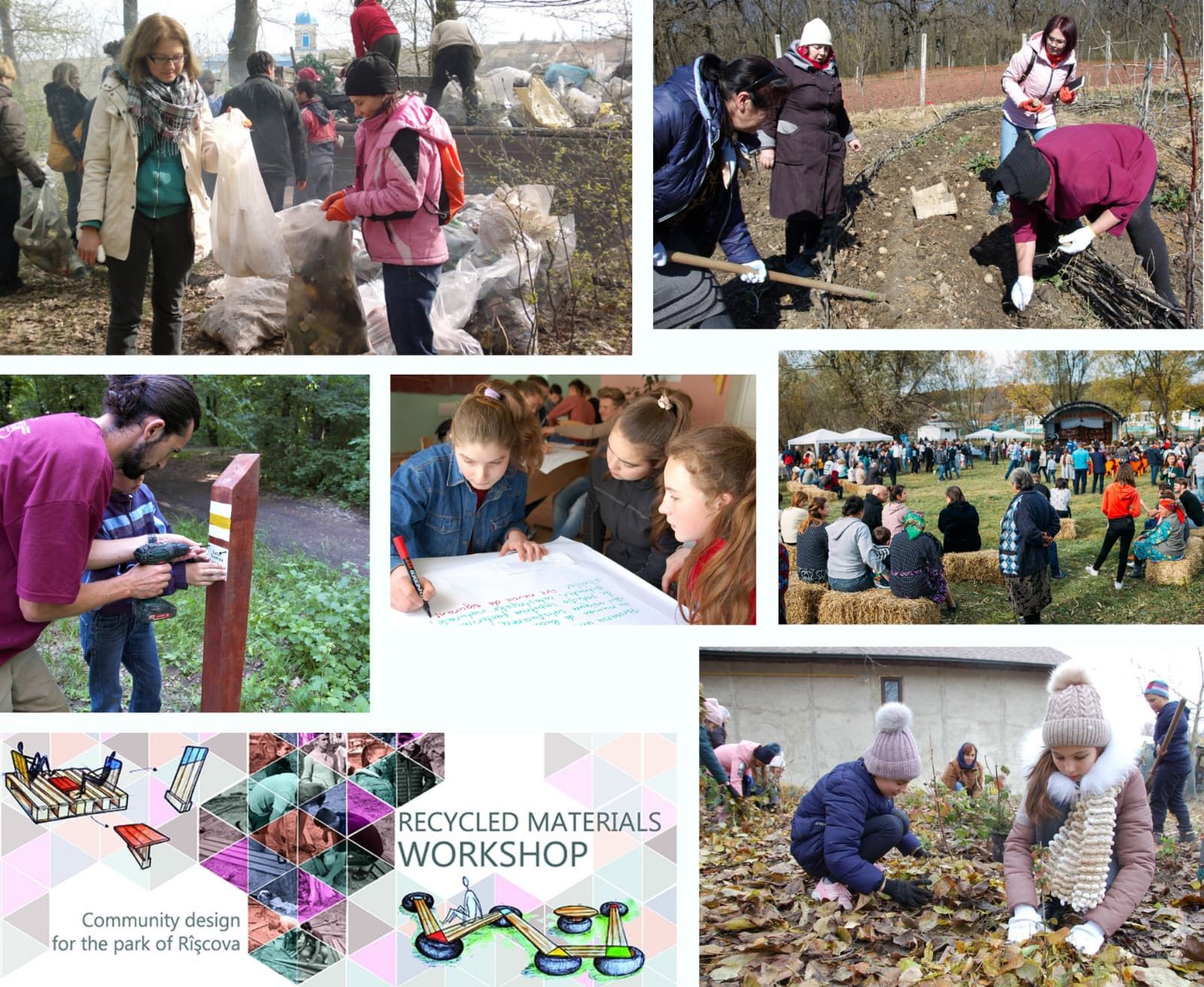 • Riscova community park was initiated by the first EcoClub participants. It grew from a few benches made from recycled wood under a tree into a space that hosts major community events. Multiple people joined hands to build a playground, a stage, install a table tennis, plant trees and flowers.